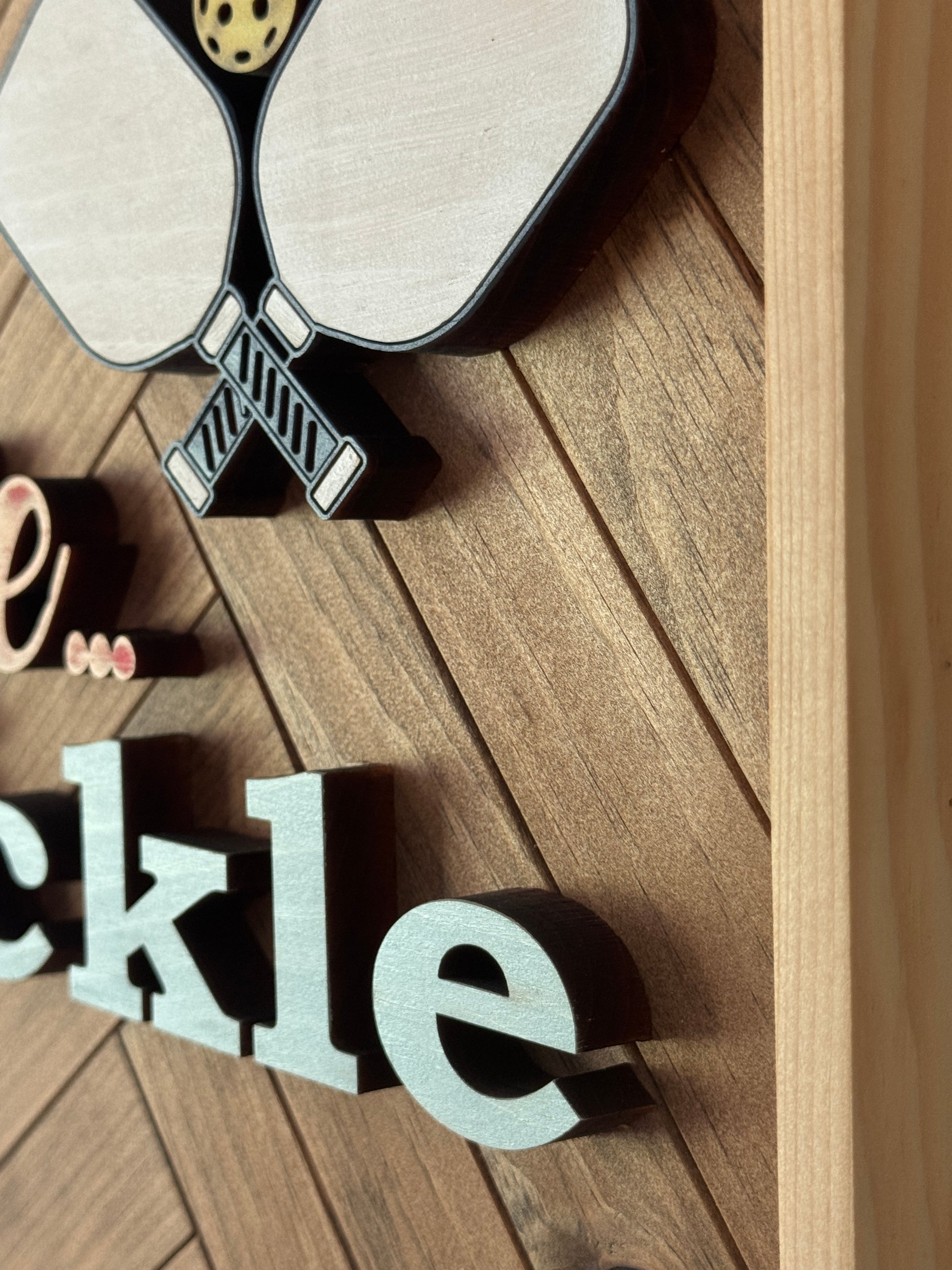 "Beach Please... Let's Pickle" – Handmade Pickleball Wall Sign with Pine Herringbone Backer (24.5" x 12.5")