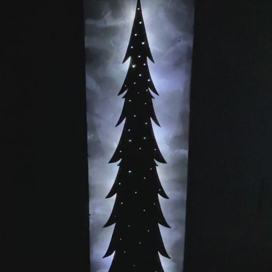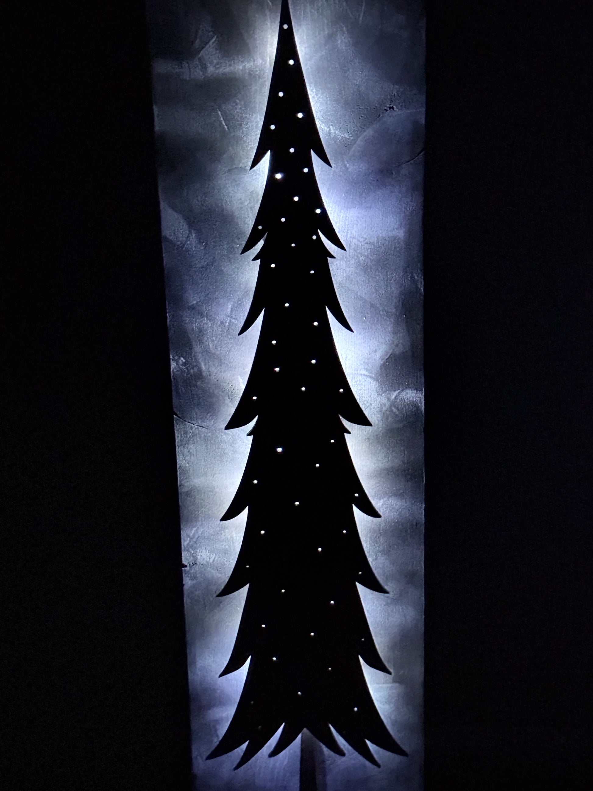 10x48” Lighted Christmas Tree Leaner | White LED Backlight | Battery Powered with Timer option