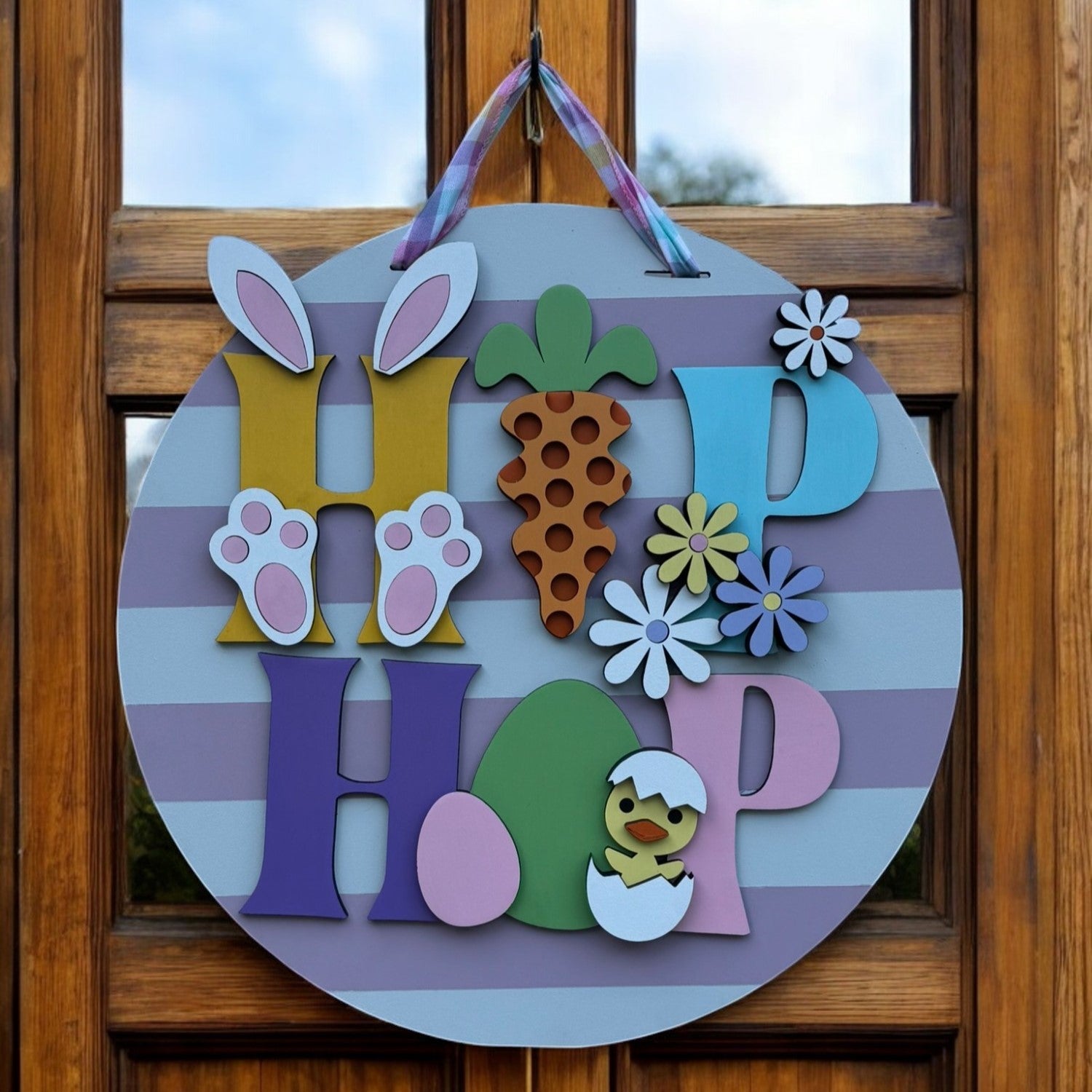 We hand-assemble each sign, carefully layering the pieces to enhance its dimensional appeal. Finished with a ribbon hanger—and some adorned with a decorative bow—our signs bring a warm and welcoming touch to any door or entryway.