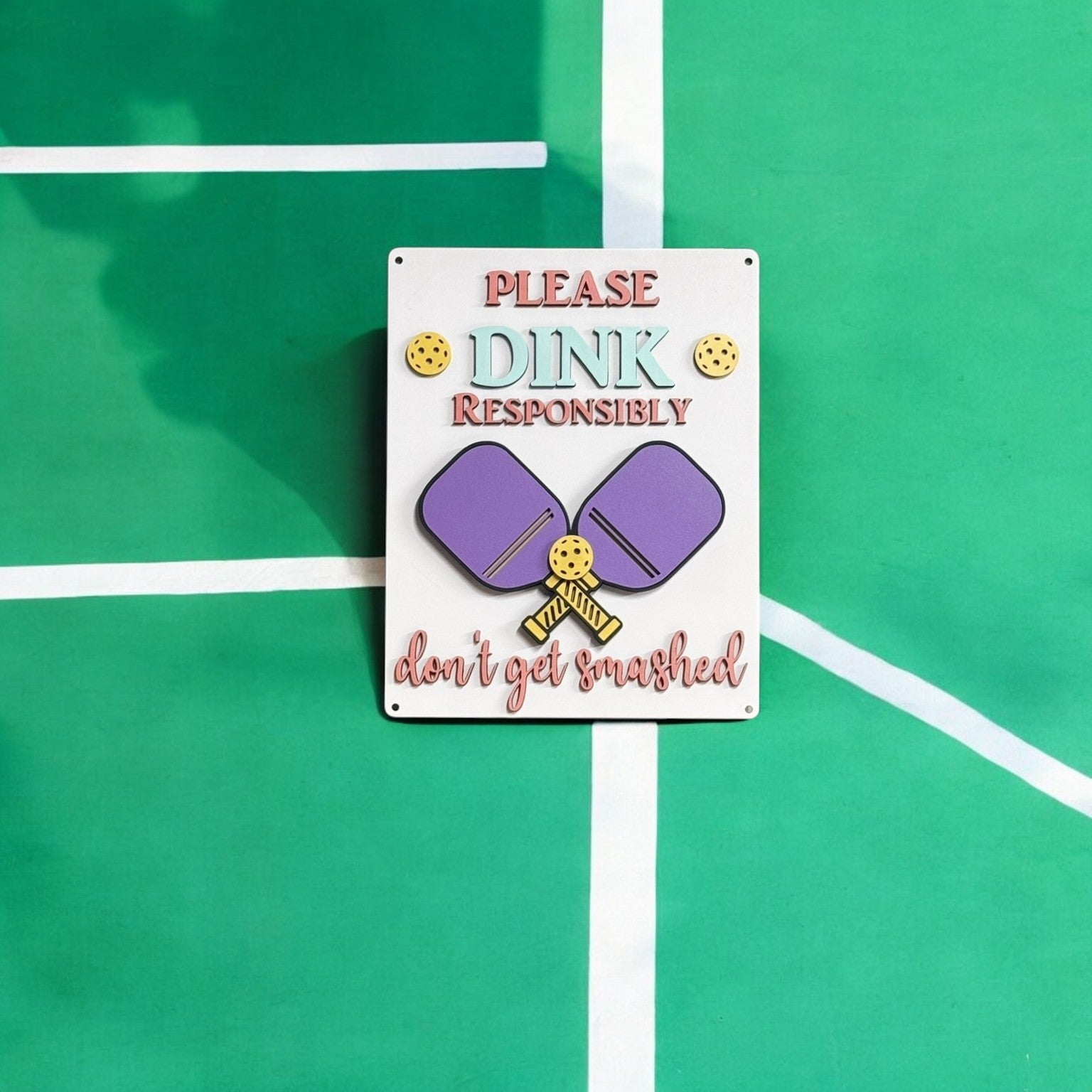 Serve up some laughter and style with this one-of-a-kind pickleball wall sign—because we all know, you gotta dink responsibly. 😉
