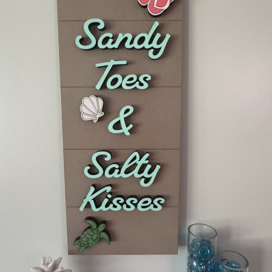 "Sandy Toes & Salty Kisses" – Handmade Coastal Wall Sign (24" x 10")