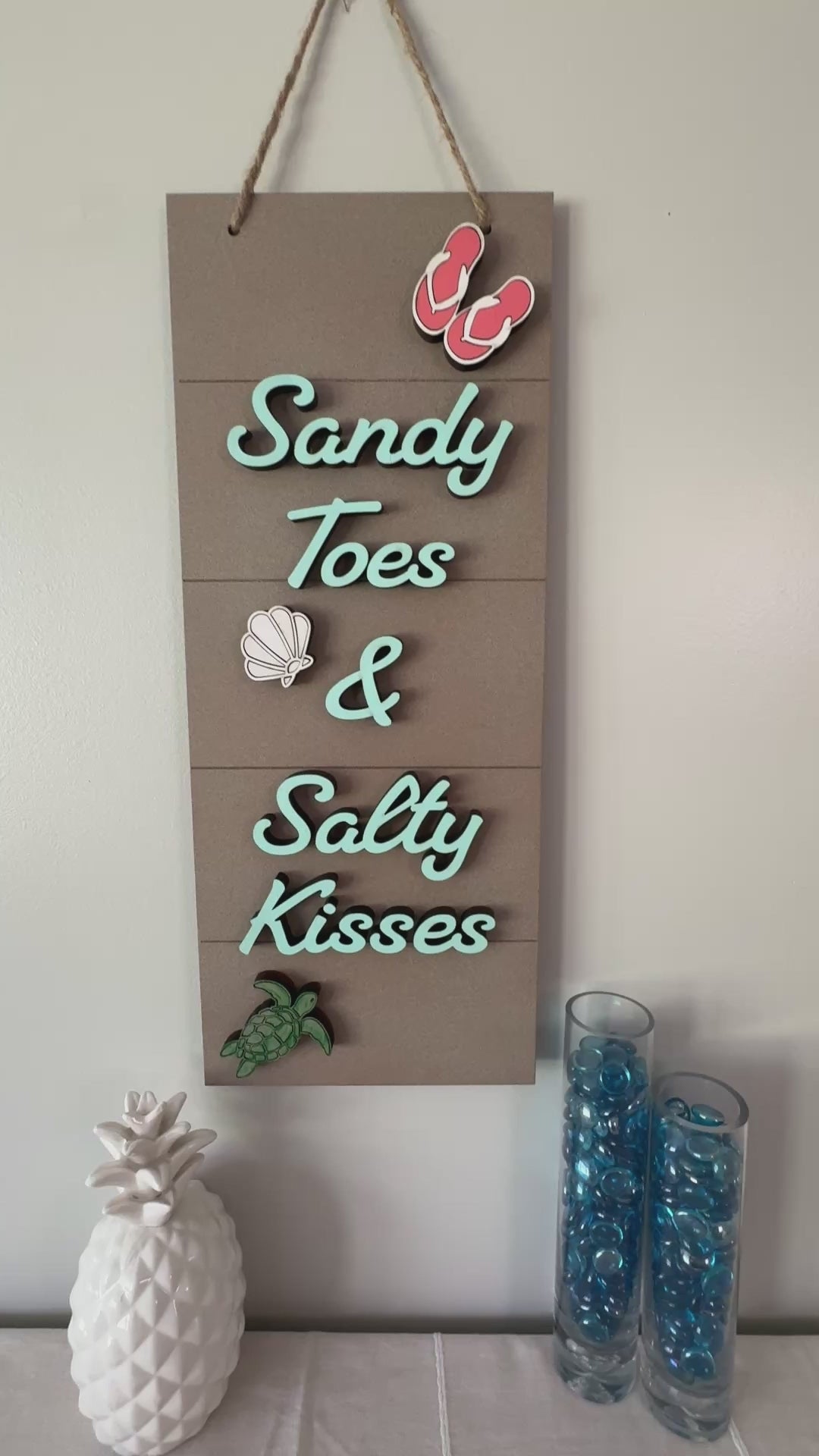 Bring the relaxed vibes of the beach into your home with our “Sandy Toes & Salty Kisses” handmade wall sign. Perfect for coastal homes, beach lovers, or summer-inspired décor, this charming sign adds a splash of sunshine and serenity to any space.